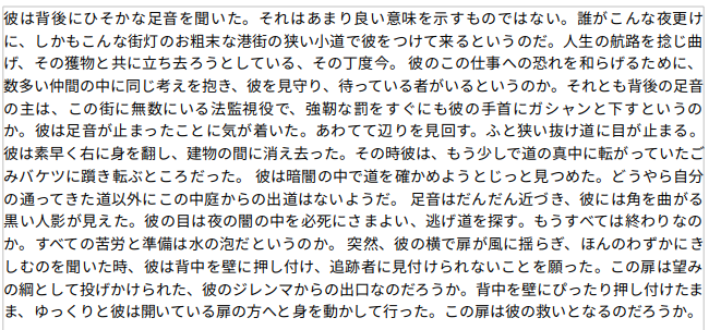 ただし、YomiTokuでは短編の長さが720ピクセル以上であることを推奨しています。今回はそれを下回るサイズなので、精度が低下する可能性はあります。このあたりも注目すべきポイントです。
