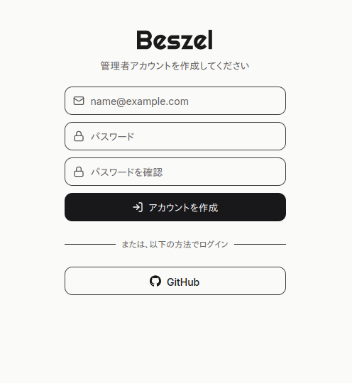 続いてbeszelを動かすディレクトリと、その中にDocker Compose用のYAMLを作成します。以下のコマンドを実行してください。ここではbeszelのバージョンとして、本記事執筆時点