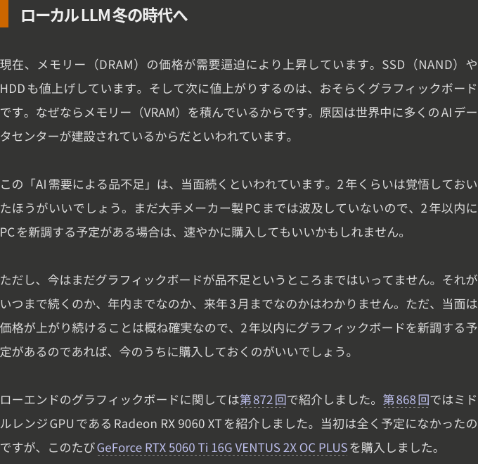ローカルLLM冬の時代へ