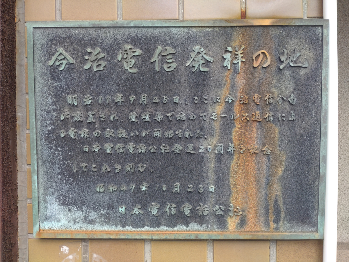 愛媛県今治市の港付近をふらふらと散歩していて見つけたのが、今治電信発祥の地です。