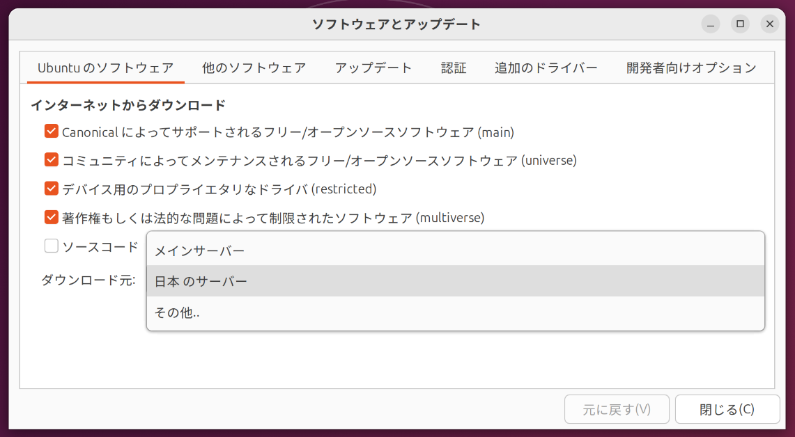 Ubuntuはインストール時の言語設定等を元にして、パッケージリポジトリに対する適切なミラーサーバーを選択する仕組みになっています。