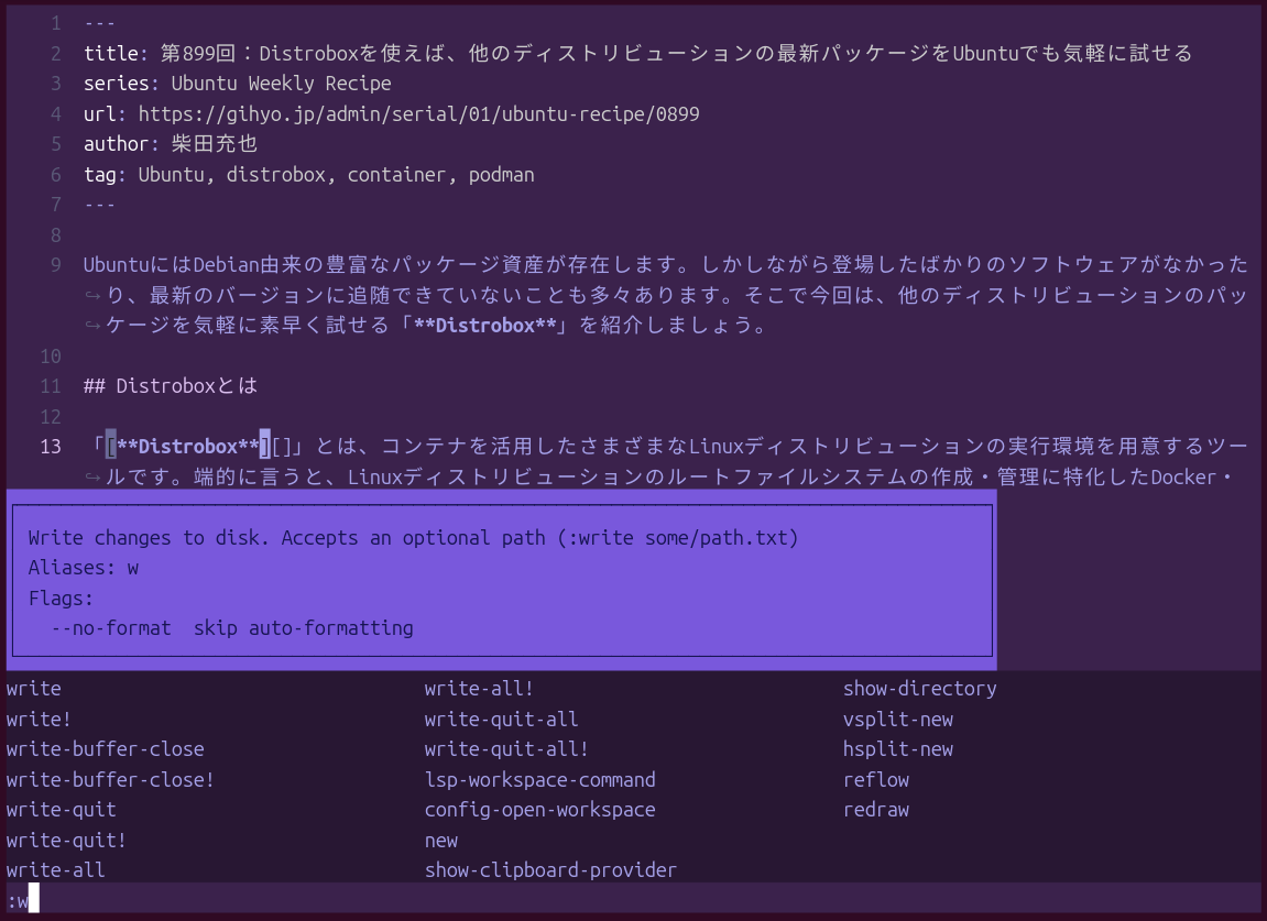 これでUbuntuからもHelixを使えるようになりました。なお、distrobox-export --bin /usr/」