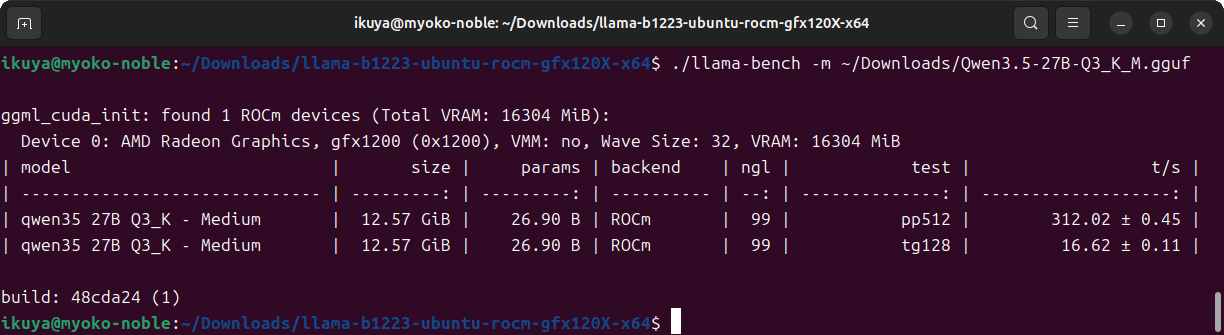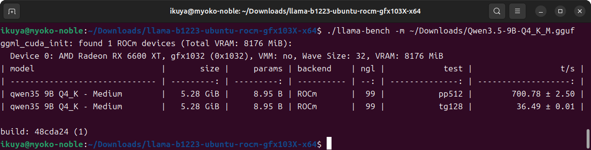 もちろんこれを使用してもいいのですが、llamacpp-rocmというAMDによる独自のllama.