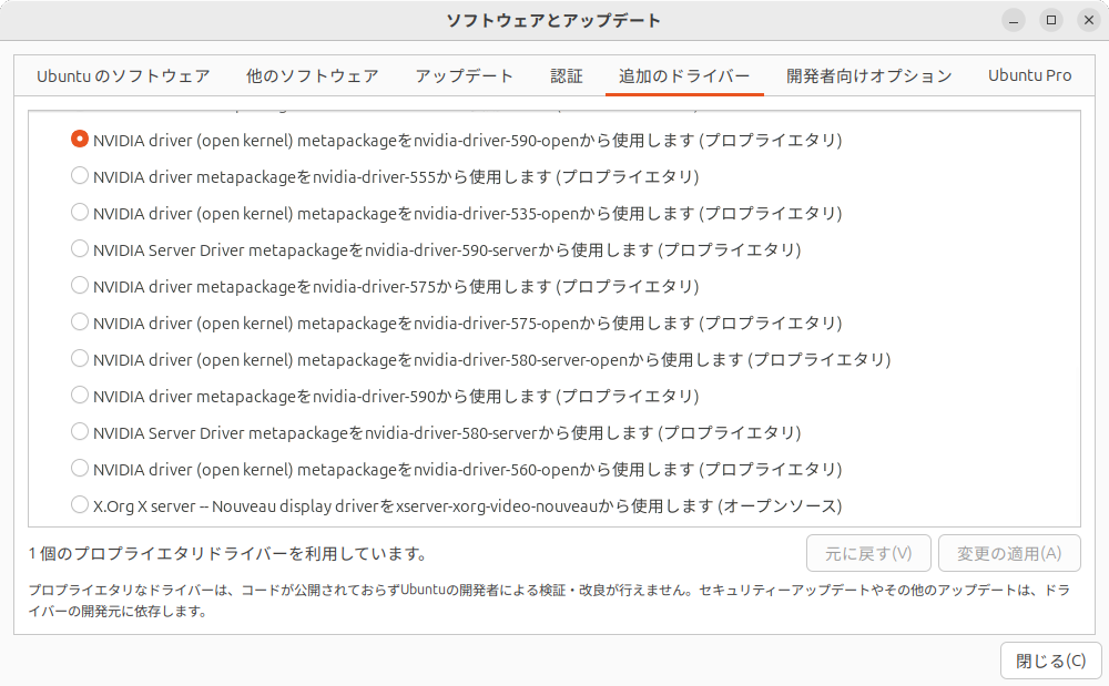 おおむね第891回のとおりですが、NVIDIAドライバーのバージョンは現時点で最新バージョンの590としています