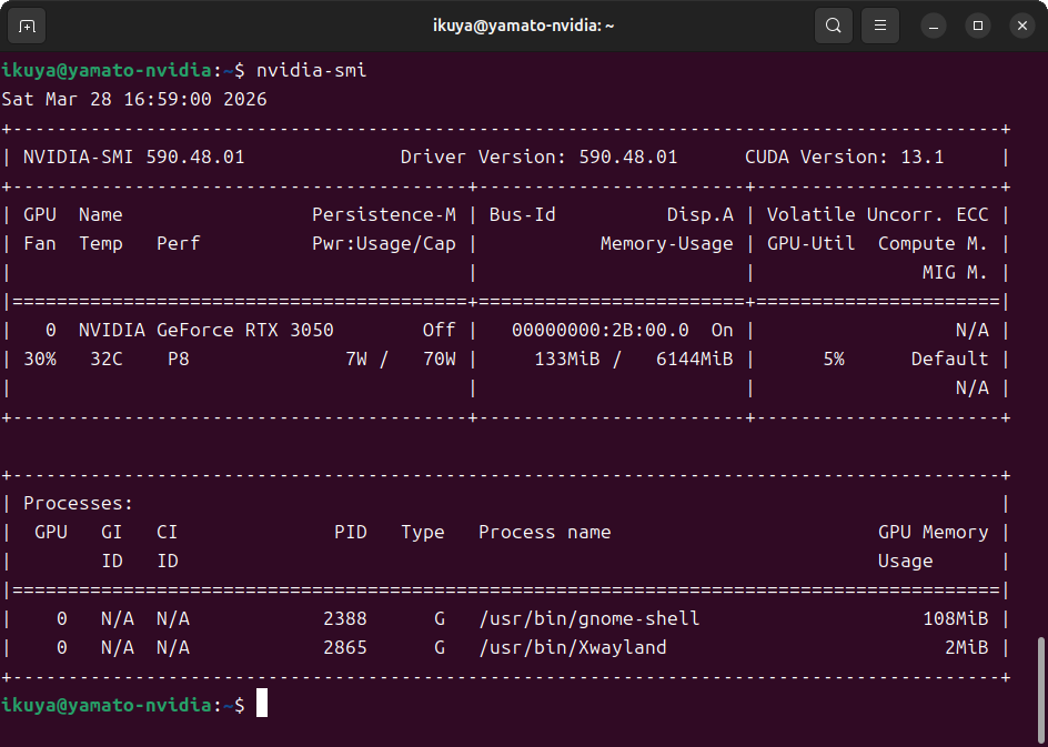 nvidia-smiコマンドでは、なぜか13.