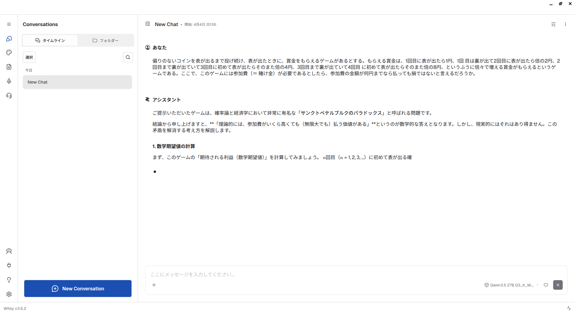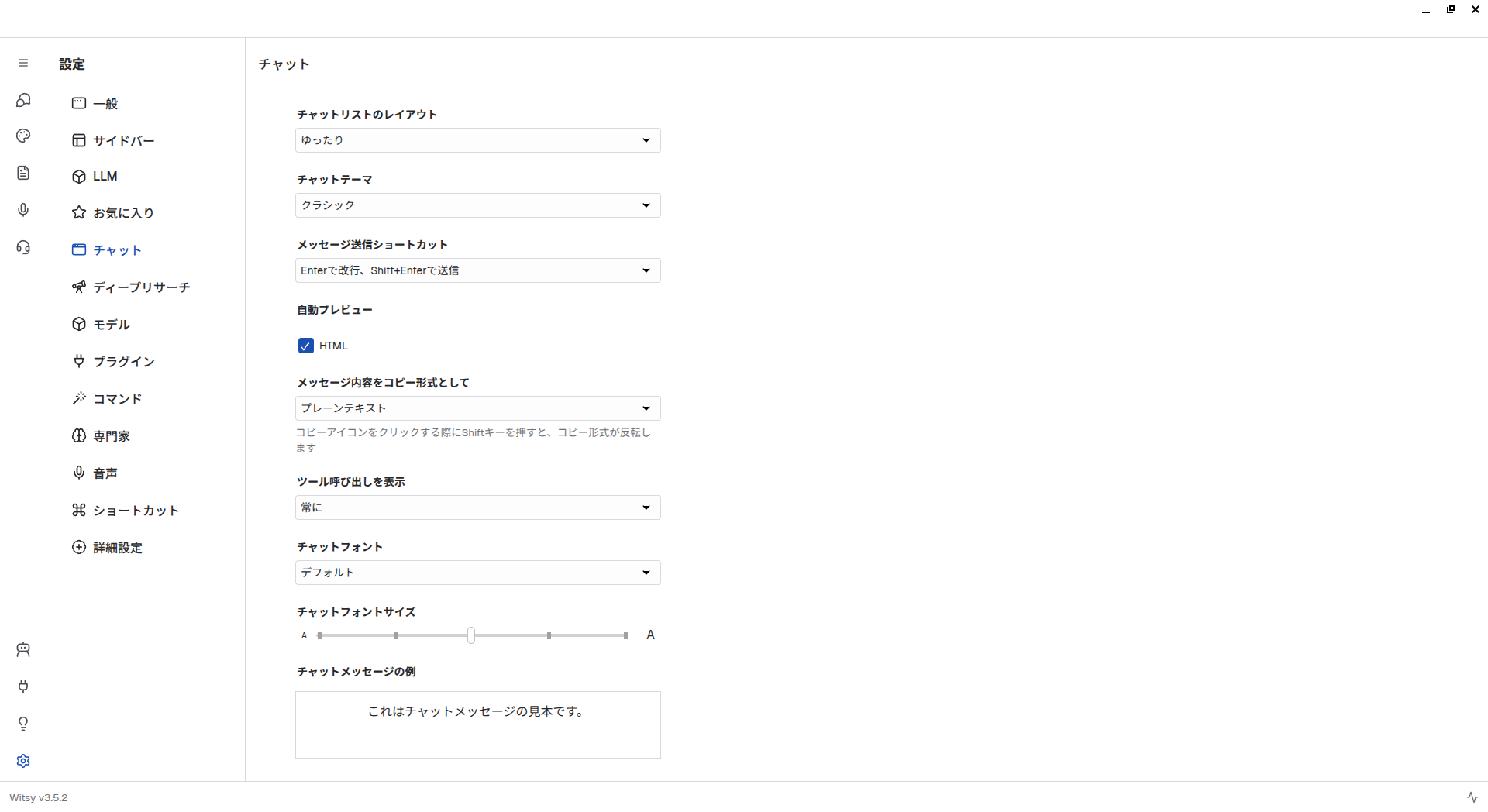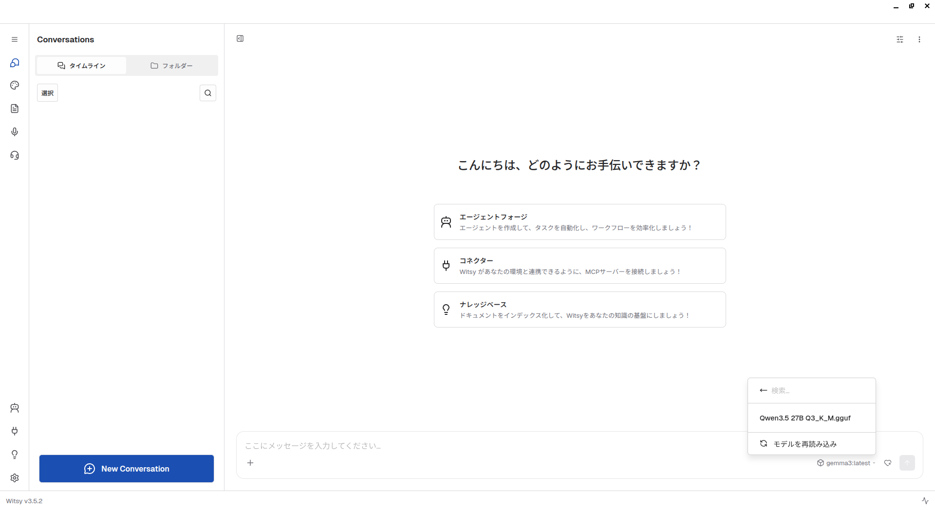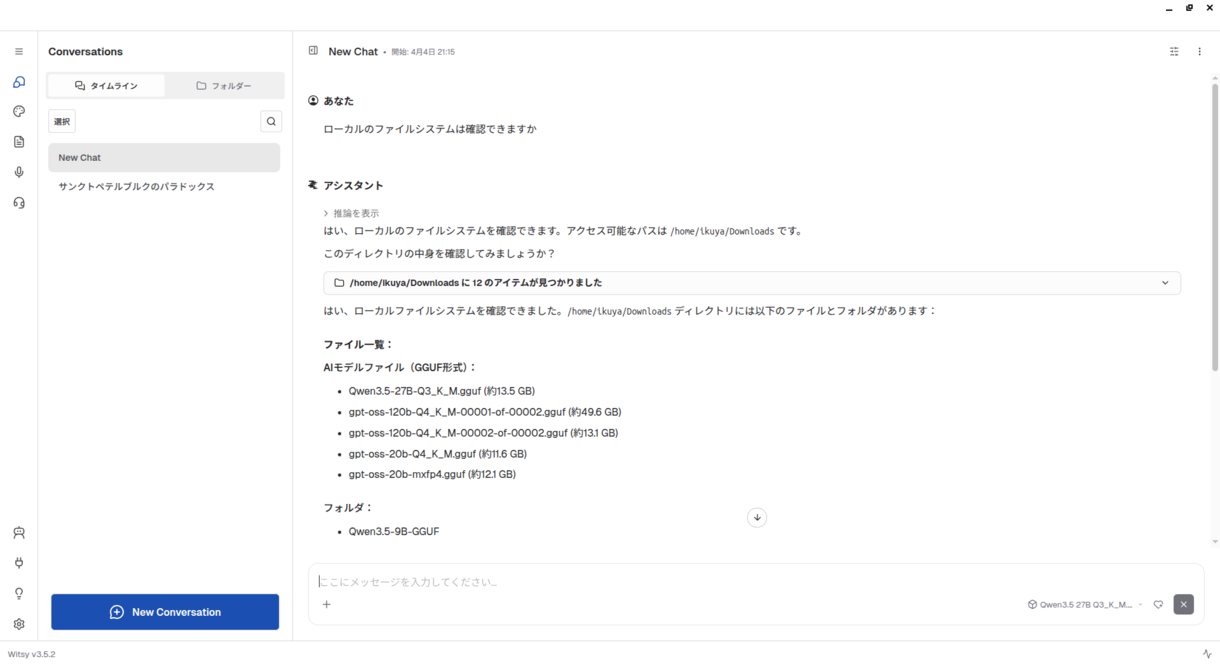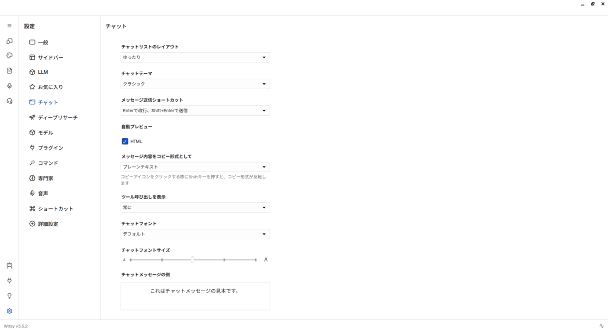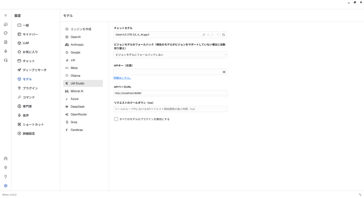 そんなときに次の候補にしたいのが、第883回でも簡単に紹介したWitsyです。LLM管理機能こそはありませんが、多くのクラウドLLMサービスに対応しているばかりでなく、ローカルLLMにも対応しています。対応するローカルLLM実行環境はLM StudioとOllamaですが、LM Studioのバックエンドはllama.