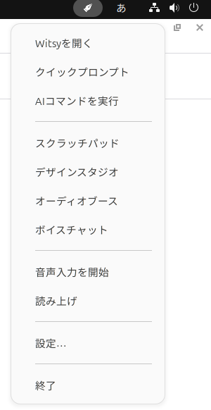 有効にするため、いったんWitsyを再起動します。なおウィンドウを閉じただけでは終了せず、右上の万年筆アイコンをクリックしてメニューを表示し、