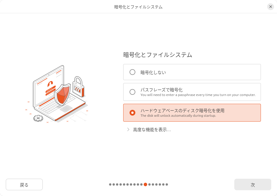 そして、本記事の執筆段階では明らかになっていませんが、FDEを有効にした場合にUbuntuのアップグレードはできないかもしれないという覚悟は必要です。26.