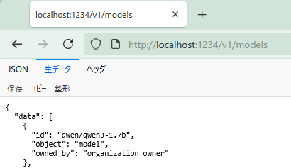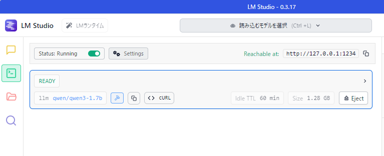 LM Studioでは1234ポートで待ち受けを行うので、次のようなURLでアクセスします。