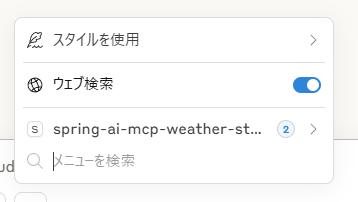 設定がうまくいくと、次のようにプロンプト入力のツール設定にMCPサーバーが表示されます。