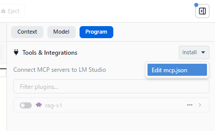 それでは、このMCPサーバーをLM Studioから呼び出してみます。この場合、LM StudioがMCPクライアントということになります。