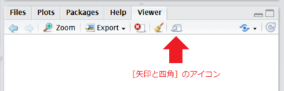 P.275の1~3行目に記載されている[Viewer]タブでの表示について、Windows上でRStudioを使用している場合に、正常にプロットが表示されないことがあります。その場合は[Viewer]タブにある[矢印と四角]のアイコン(下図参照)をクリックしてください。クリックするとWebブラウザが起動し、ブラウザ上にプロットが表示されます。