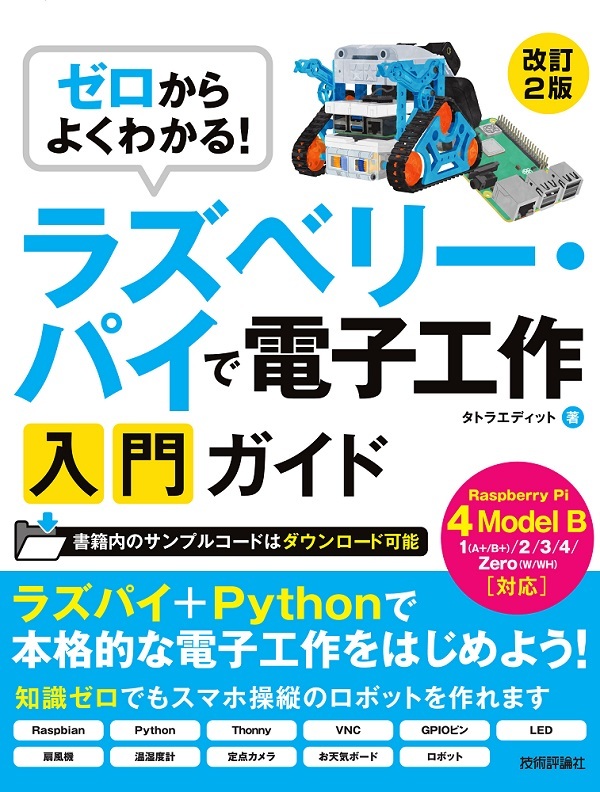ラズベリー・パイによる電子工作の入門書「ゼロからよくわかる! ラズベリー・パイで電子工作入門ガイド」の改訂版です。ラズベリー・パイの概要からセットアップ、OSの操作方法、Pythonプログラミングと順を追って解説し、電子工作では扇風機、湿温度計、お天気ボード、スマホで操作するロボットなどを作成します。過去に発売されたRaspberry Piはもちろん、2020春に発売された最新モデルRaspberry Pi 4 Model Bにも対応します。