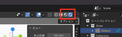 - テンプレートファイル「chap1tem.blend」を開き、ドロー平面に描画する際にペンが画面に表示されない場合の対応方法