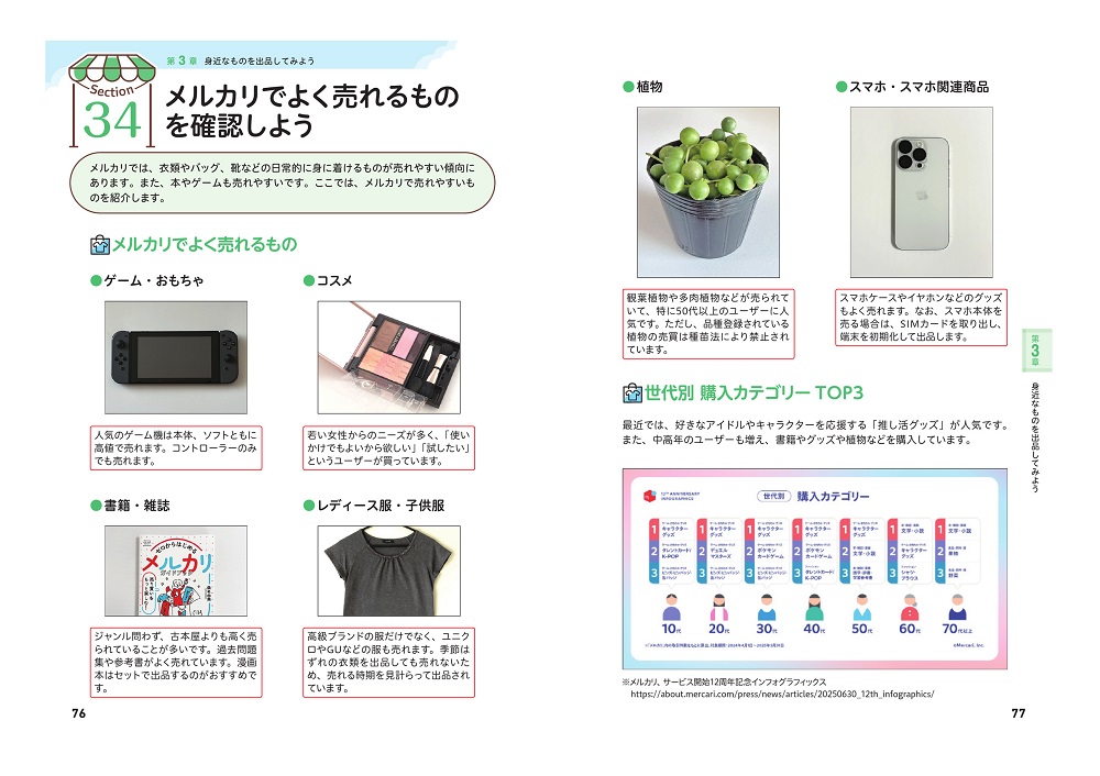 さらに、最近になって新しく追加された機能の紹介やポイ活、今流行りのスキマバイト「メルカリハロ」といった内容も詳しく解説しています。おトクに楽しめる機能やノウハウも盛りだくさんなので、メルカリの「副業」や「おトクに稼ぐ」ことに興味のある方にもオススメです!