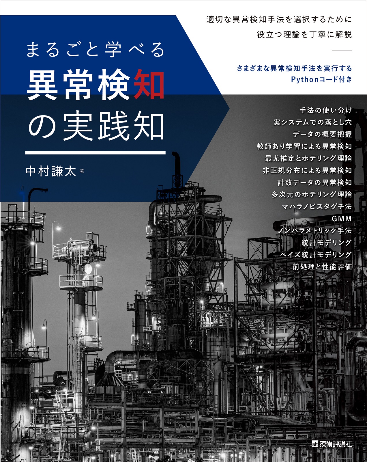 異常検知は製造業における不良品検出や故障の予兆検知、セキュリティ分野での不正アクセス検知、医療における病変検出など、実社会の幅広い場面で不可欠な技術です。本書は、その理論と実装をバランスよく解説した実用的な入門書です。