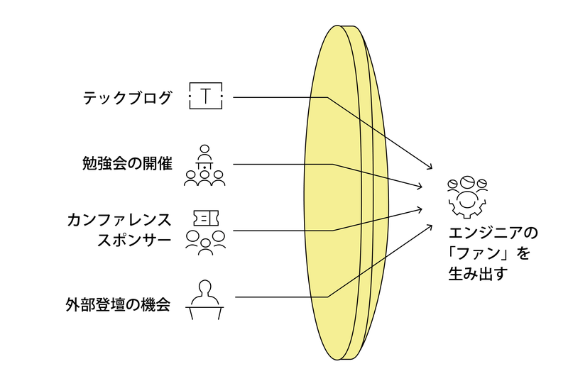 その究極的な目標は、エンジニアが自社の技術や組織、エンジニアリングカルチャーに共感や好感を持つ状態を実現することです。採用広報との最大の違いは、