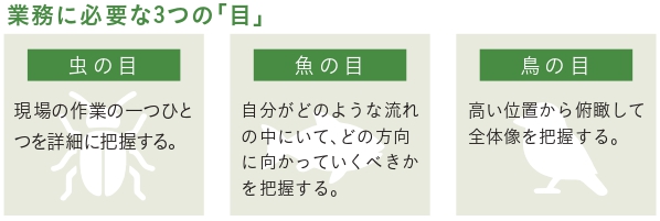 業務全体を最適化するためには、業務を正しく捉える必要があります。そして、これを実施するためには、3つの視点が欠かせません。それぞれの視点について簡単に解説します。現場の作業一つひとつを詳細に把握するのが、