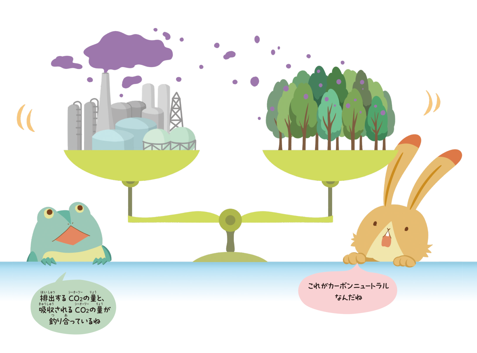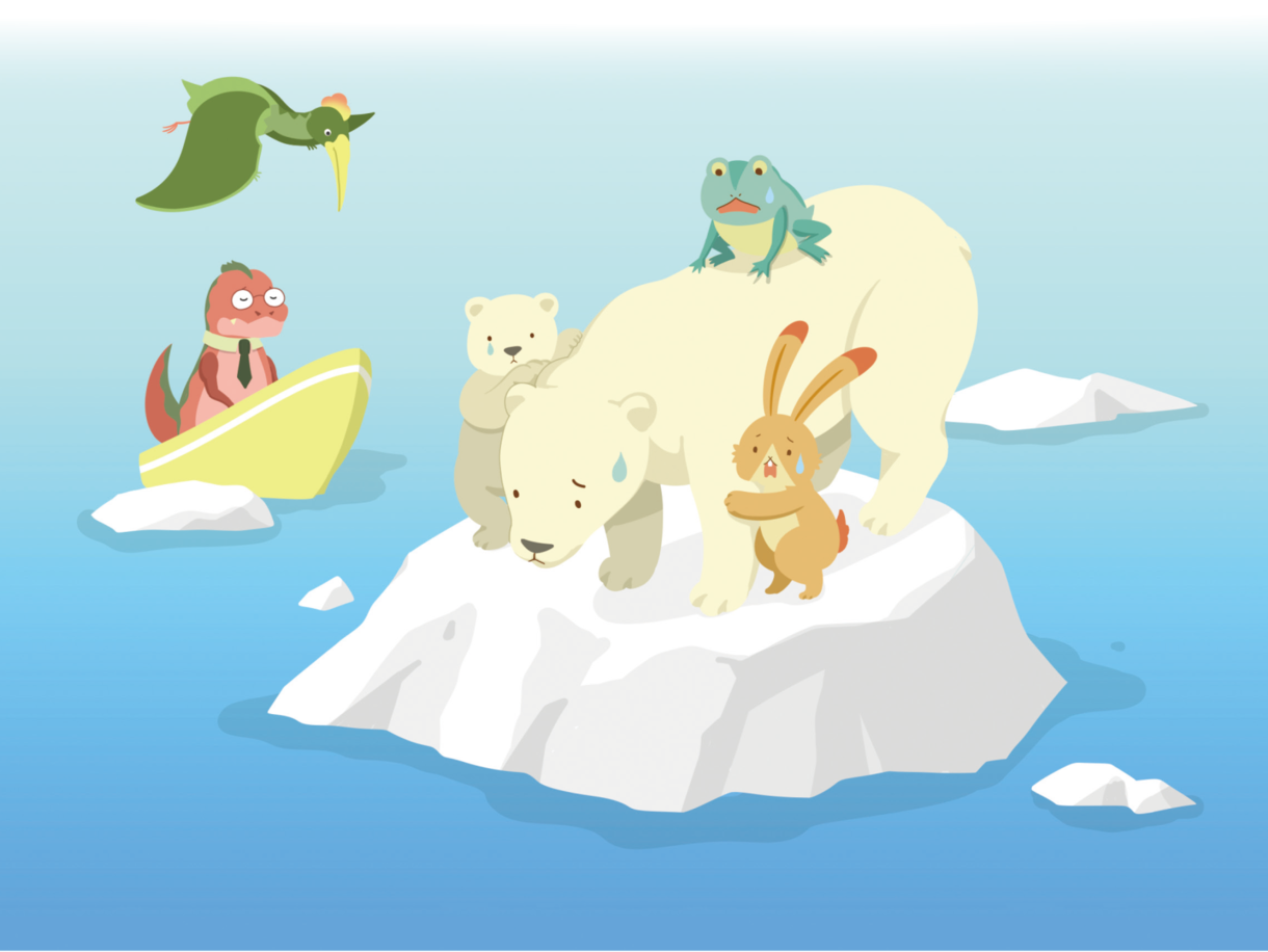 さらに、身近なところからはじめる気候変動対策など、ウサギさん、カエルさん、ティラノサウルスさん、ケツァルコアトルスさんなどのキャラクターが例を挙げながら解説しています。気候変動問題とはどのようなものなのか、本書をもとに考えてみてはいかがでしょうか。