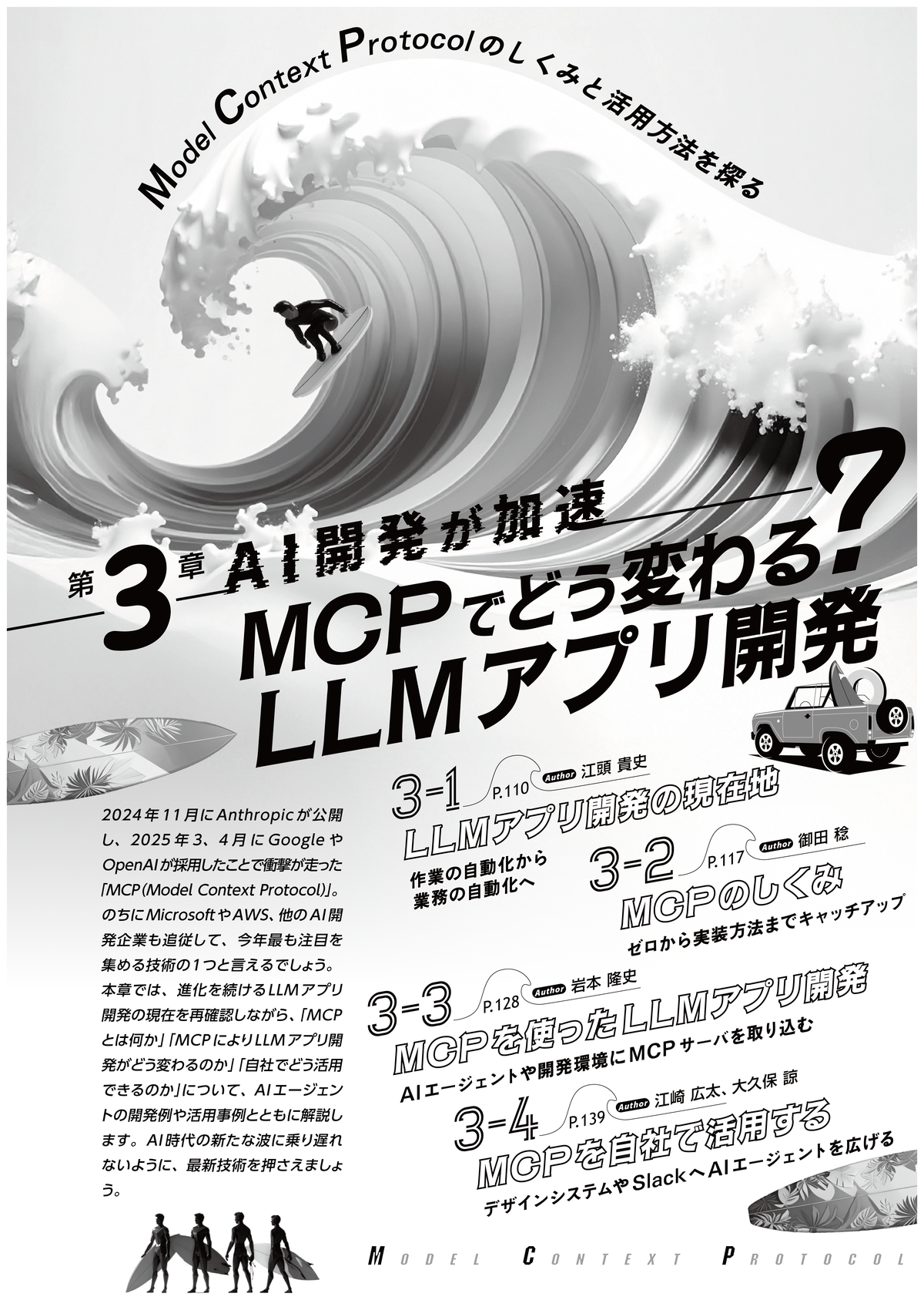そこで第3章では、MCPをテーマに、LLMアプリ開発の新しいかたちを解説します。初出は