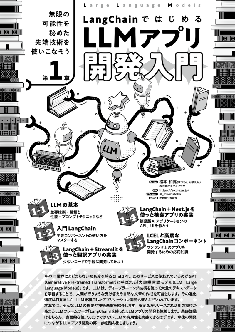 そこで第1章では、LLMアプリ開発の基本をテーマに、代表的なフレームワークであるLangChainを中心に、LLMを使ったアプリケーション開発の流れを解説します。初出は