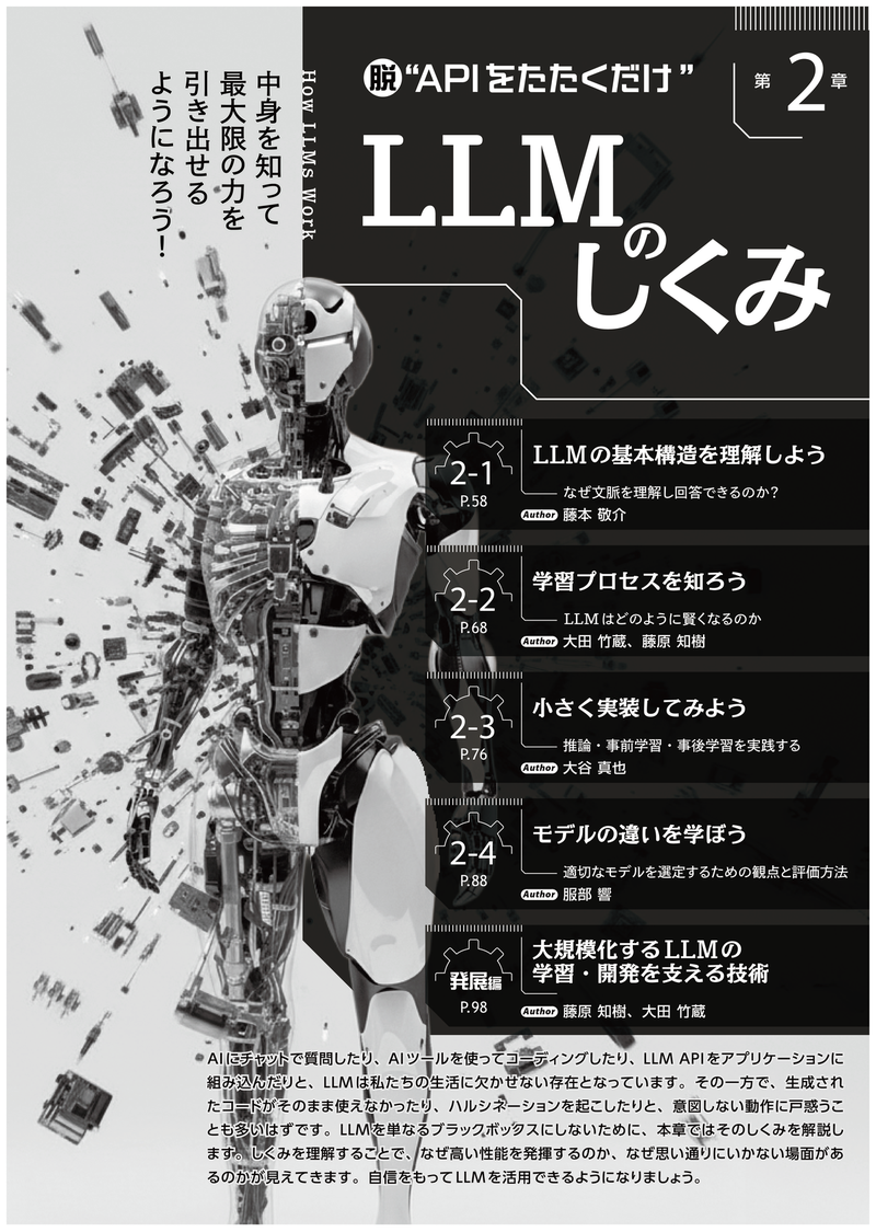 そこで第2章では、LLMの基本構造や学習のしくみをテーマに、モデルの内部でどのような処理が行われているのかを解説します。初出は