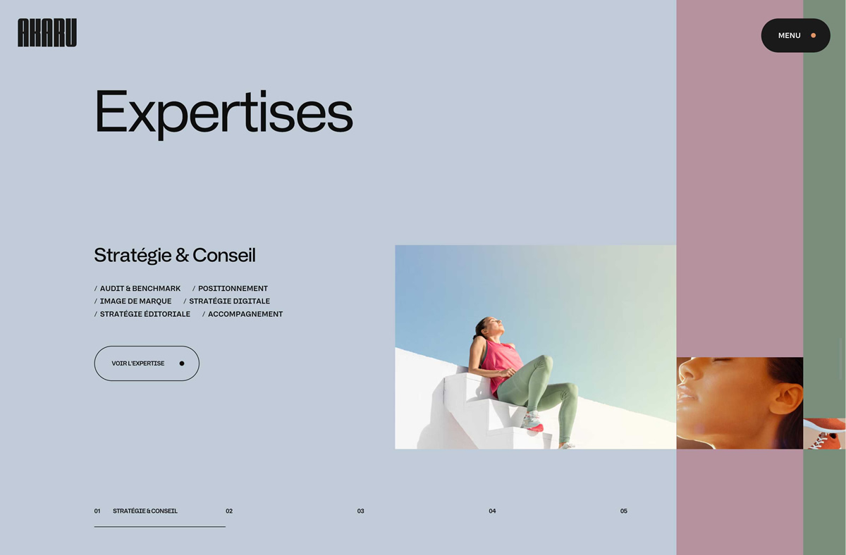 図40 ショーケースサイトやECサイト制作を専門とする、2008年創業のフランス・リヨンのデジタルクリエイティブエージェンシー、Akaruのウェブサイト(Credits: Akaru, White Elephant)