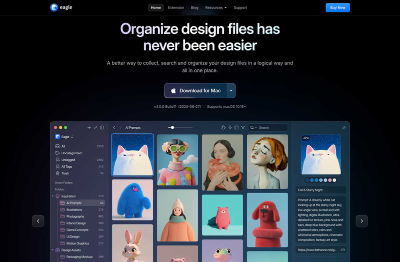 図59 画像の収集・管理・閲覧が行えるライブラリアプリ「Eagle」。対応しているファイル形式が豊富で、気になるものをすぐにライブラリ化できる。サブスクリプションではなく、買い切りのアプリである点も特長のひとつ