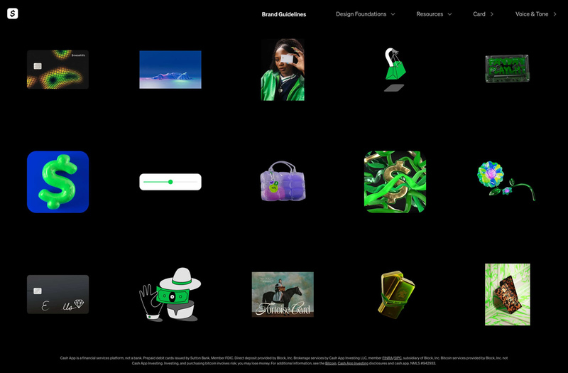 図47 アメリカの消費者向けデジタルウォレット、「Cash App」による、オンラインデザインガイドライン「Cash App Brand Guidelines」(Credits: index, Jonathan Da Costa, Quentin Hocdé)