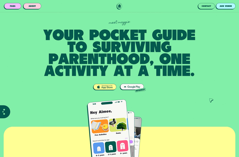 図35 子どもを持つお母さんが、子供と一緒に楽しめる地域の無料イベントやアクティビティを見つけられるアプリ、「Maggie」のウェブサイト(Credit: Alejandro Mejias)