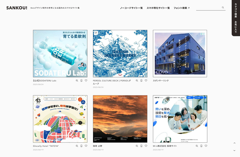 図57 日本のウェブデザインを集めたギャラリーサイト「SANKOU!」。これ以外にも「I/O 3000」「MUUUUU.ORG」「S5-Style」「81-web.com」、「Brilliant Design Collect」「1GUU」など、日本のウェブサイトを取り上げたギャラリーサイトは非常に多い