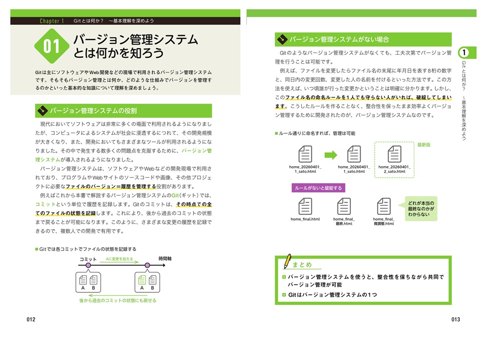 これからGitやGitHubを使いたいと思っている初心者が,GitとGitHubの操作の意味を一通り理解し,チーム開発に参加できるスキルまで1冊で身に付く実践的な入門書です!