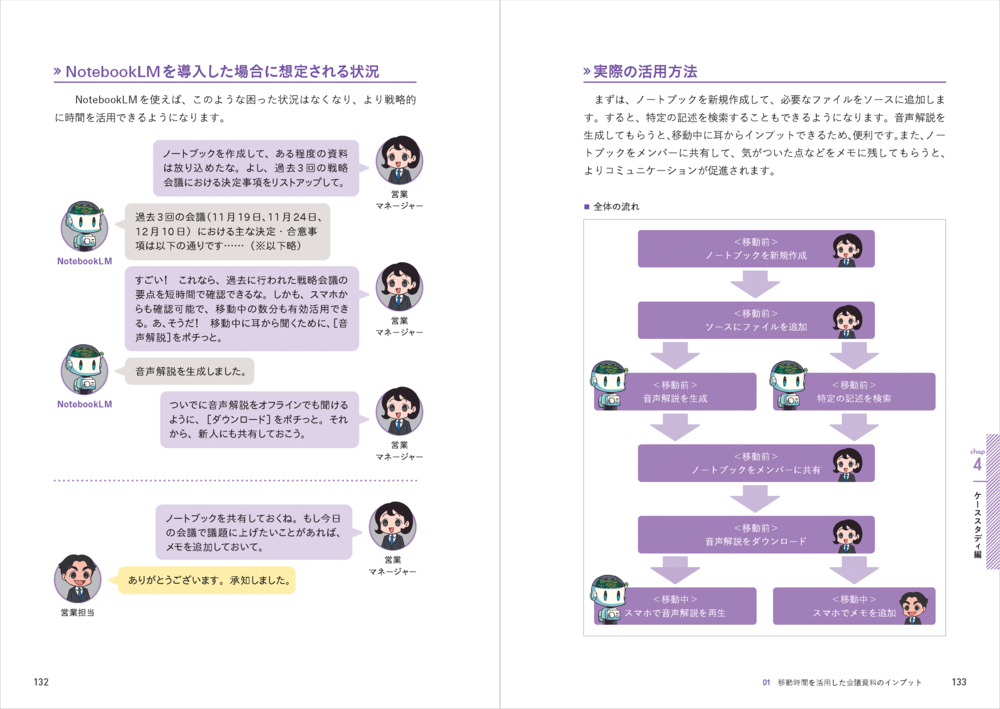 ケーススタディ編では,イラストを用いた会話形式を採用。具体的な利用場面を自分事として捉えやすく,スムーズに理解を深めることができます。