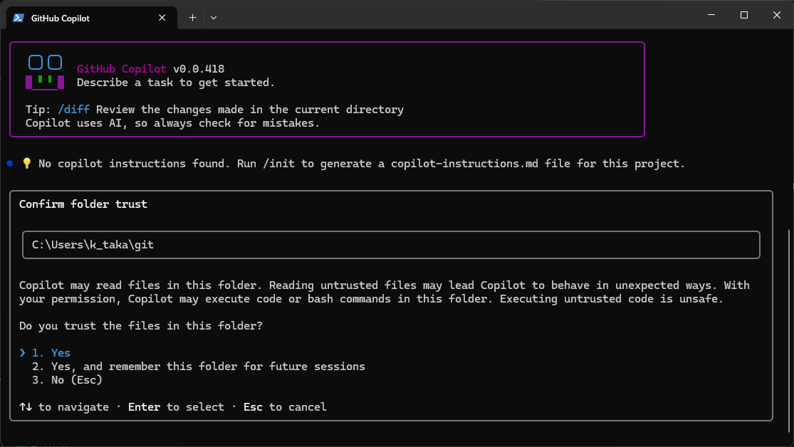 GitHub Copilot CLI が
