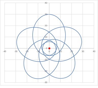 本書p.289にはExcelでこの計算をするための準備部分を記載しています。それを完成して実行した結果を図4として示します。このExcelファイルはダウンロードしてさまざまの興味深い軌道を描いてみましょう。
